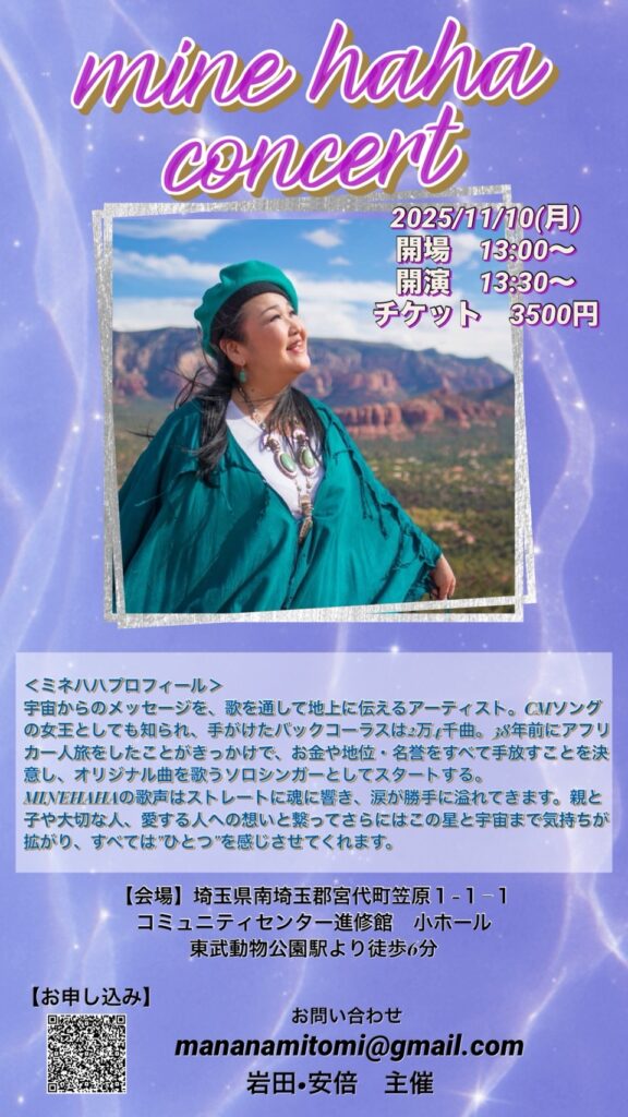 魂に響く愛の歌声 MINEHAHAコンサート 2025年10月13日(祝)